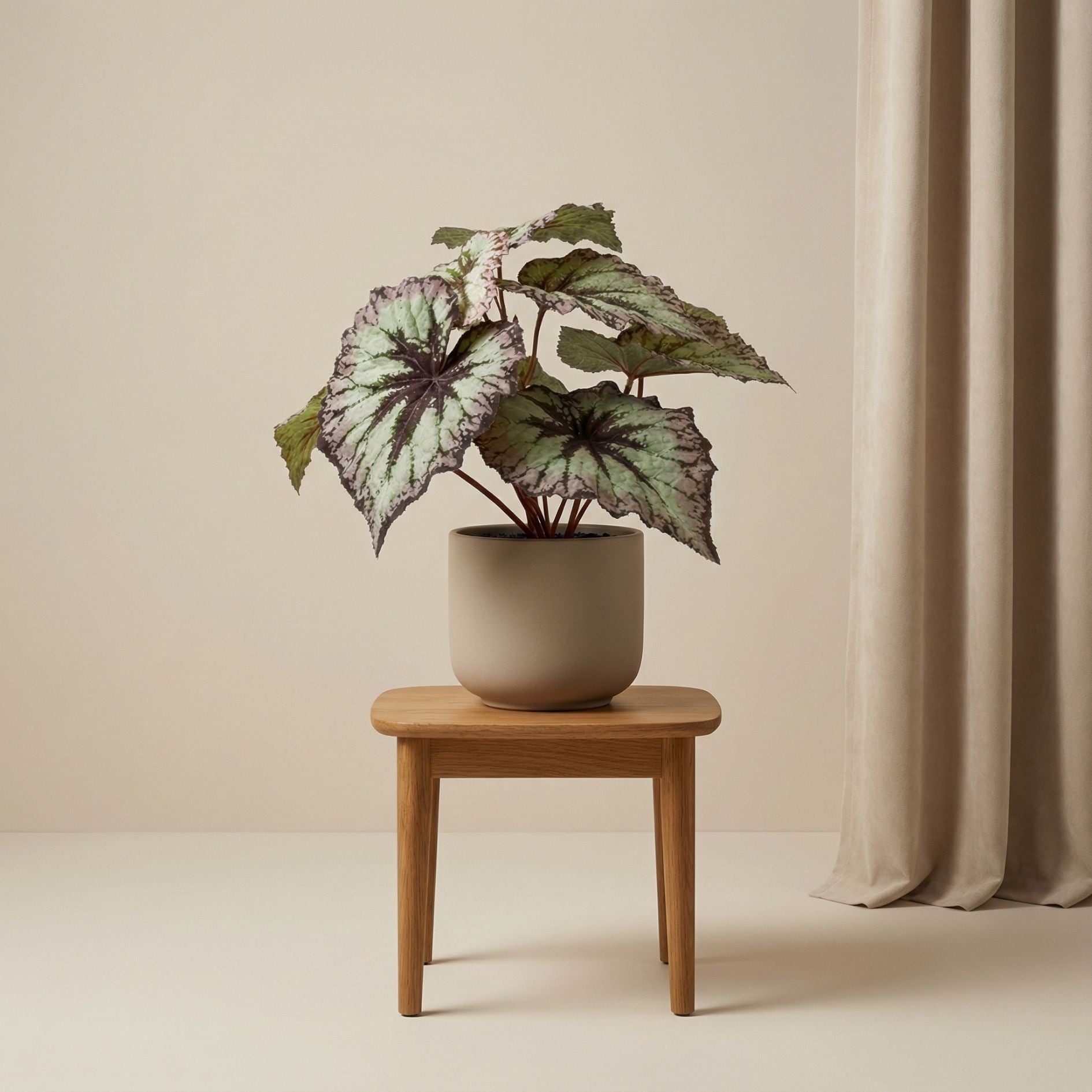 Begonia 26 cm – In pot – Grijs-paarse bladeren – Kunstplant – UV-bestendig – Binnen & buiten